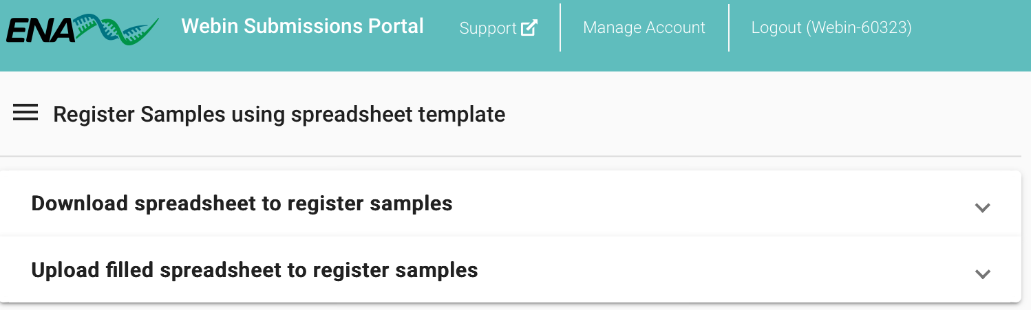 Go to the Webin submission portal, open the Dashboard menu (top left of the submission portal page), and click on Samples Report. Find the accession number (which will start with ERS) for the sample that the associated sequence file belongs to. Copy that accession number into the manifest file as the value for the SAMPLE metadata field.